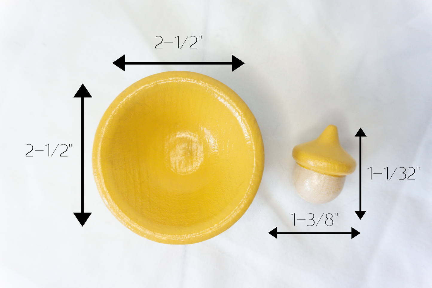 Ages 3+. Each acorn is approximately 1-3/8" x 1-1/32"