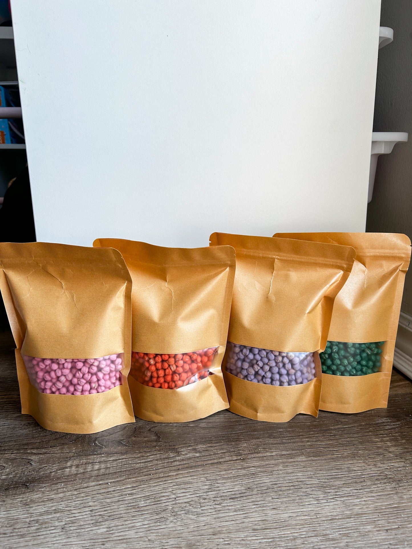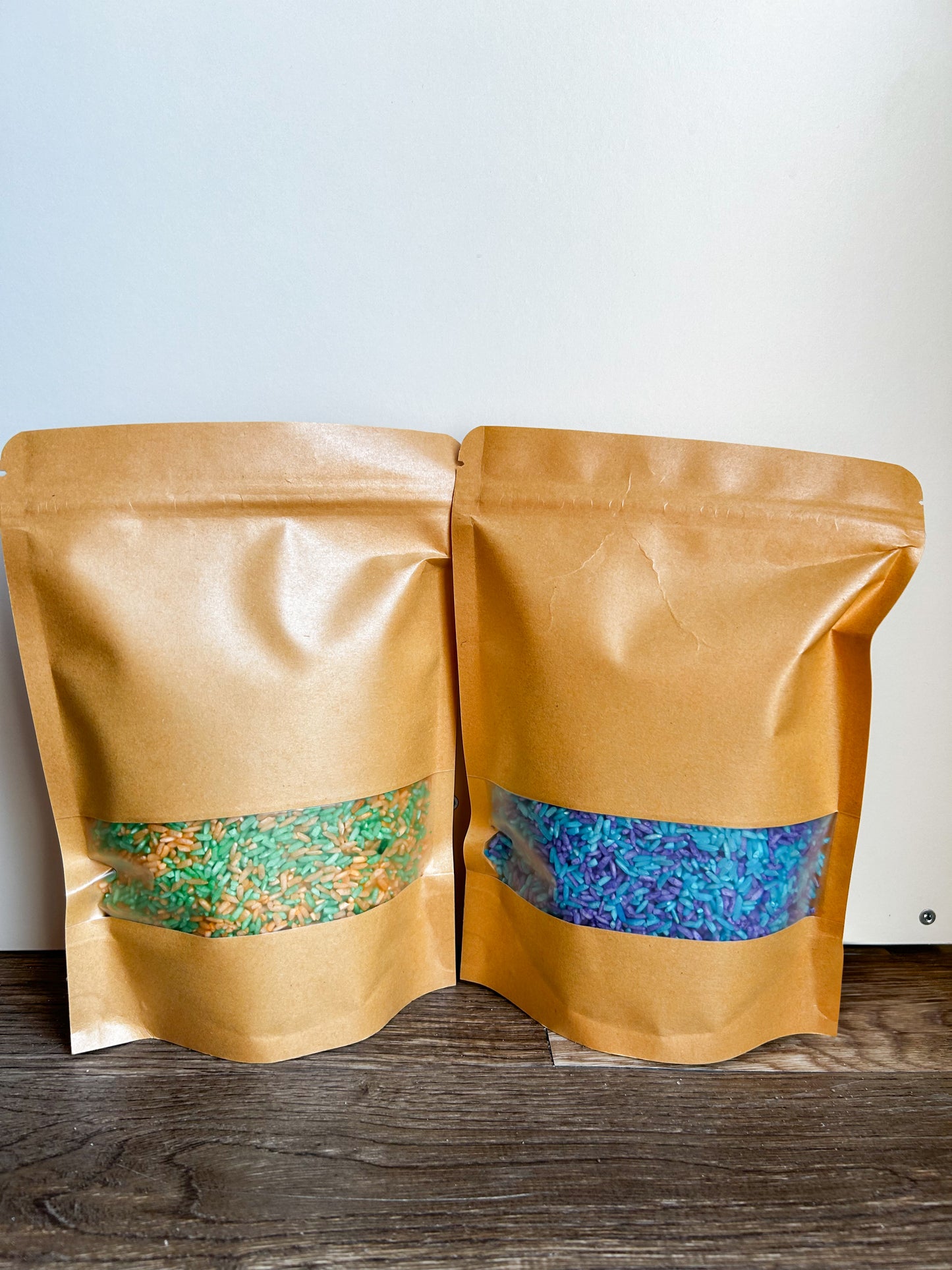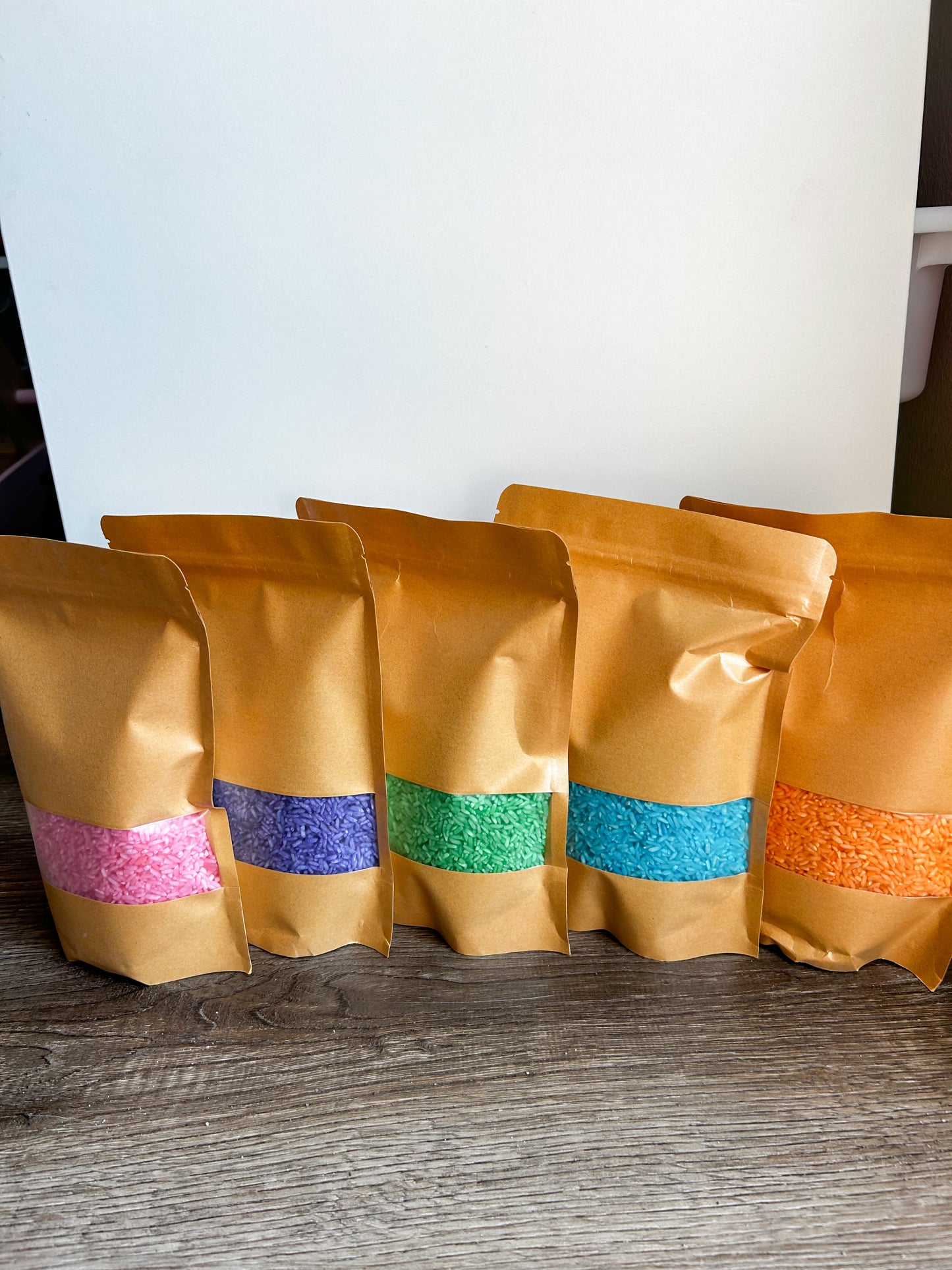The perfect addition to your sensory bin! Sensory rice or chickpeas make for hours of fun - scooping, pouring, and transferring. Each bag contains approximately 3 cups or 425grams of rice/chickpeas. It is recommended to purchase at least 2 bags.